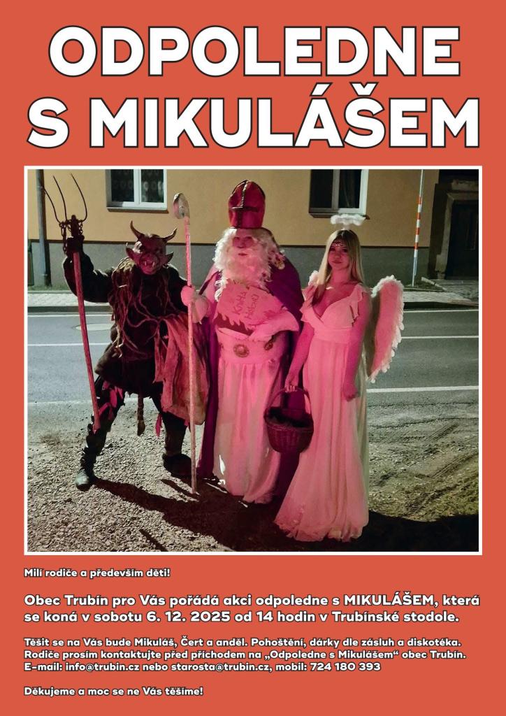 Těšit se na Vás bude Mikuláš, čert a anděl.