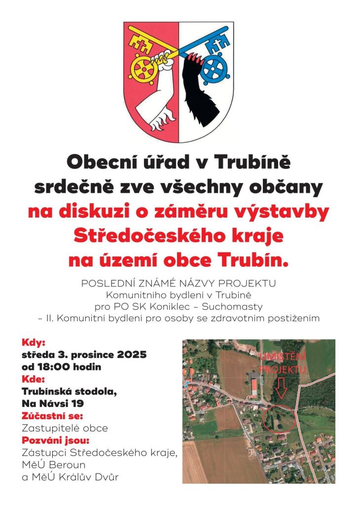 Pozvánka na diskusi s občany o záměru výstavby na území obce Trubín 1